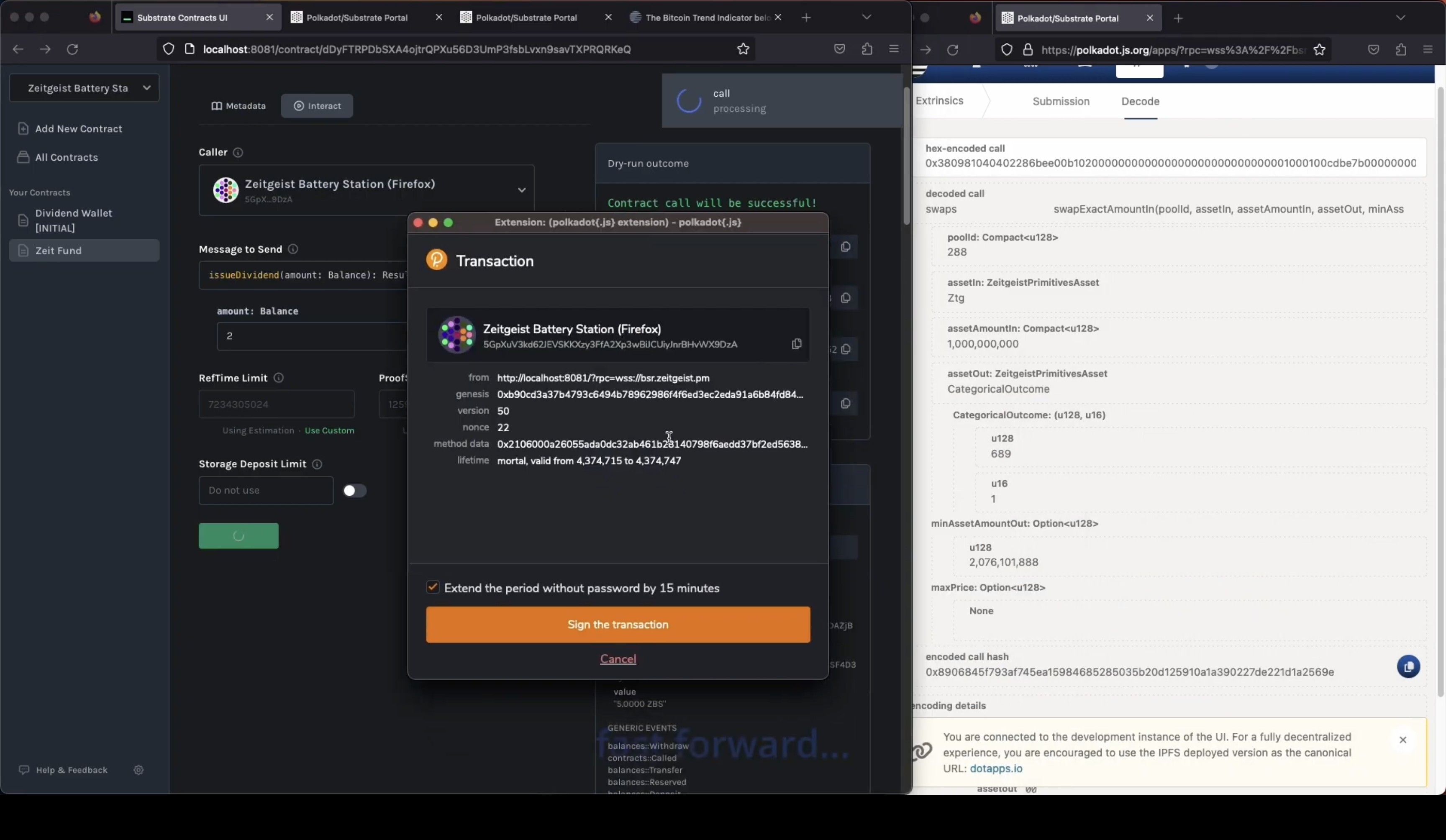 Interestingly enough, even the Zeitgeist team didn't go through the effort of making a smart contract that would interact with the runtime, so even they weren't sure if it worked or not. It does, or at least a bit of it does. We will see if the Zeitgeist Fund project will get continued funding for its development from the Zeitgeist team.
