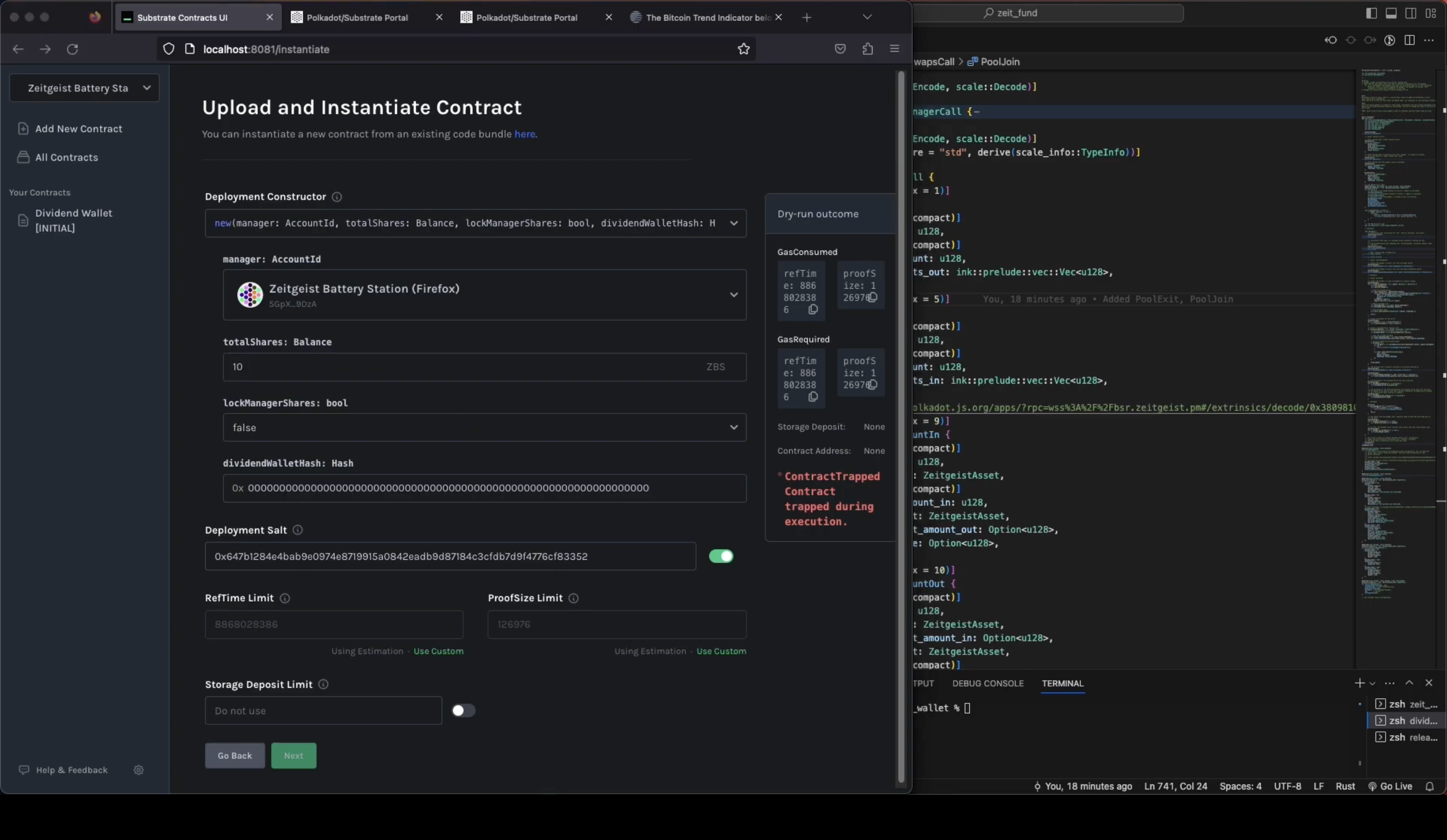 Despite a few weeks of just messing around with the smart contracts and working out the kinks with the entire ecosystem, I was able to fail my first smart contract (a DAO) due to an issue with how data is serialized in ink!. So, I pivoted and started working on a fund like the Zeitgeist team said to do.